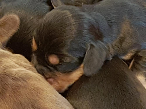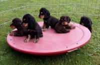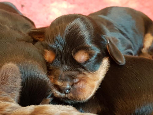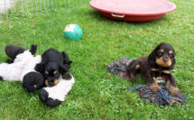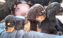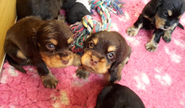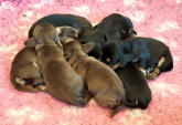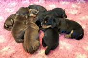 Es sind 7 Welpen in den Farben: black and tan und schokoladenbraun mit loh